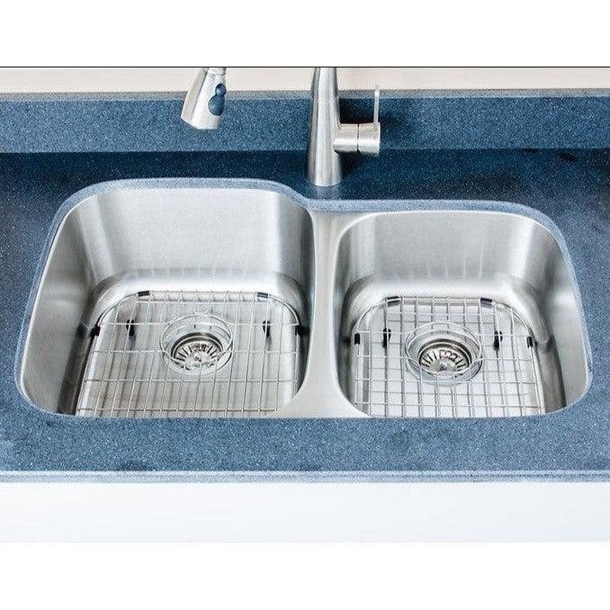 Wells Sinkware Craftsmen 32" Specialty Undermount 18-Gauge 60/40 Double Bowl Stainless Steel Kitchen Sink With 2 Bottom Protection Grid Racks and 2 Deep Basket Strainers
