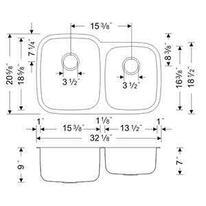 | Basin 1 Dimensions | 15.38" W x 18.63" D x 9" H |