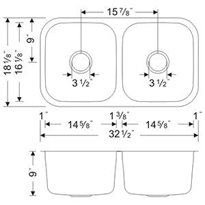 | Basin 1 Dimensions | 14.63" W x 16.1" D x 9" H |