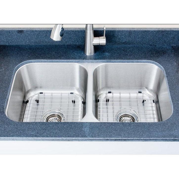 Wells Sinkware Craftsmen 33" Rectangle Undermount 16-Gauge 50/50 Double Bowl Stainless Steel Kitchen Sink With 2 Bottom Protection Grid Racks and 2 Deep Basket Strainers