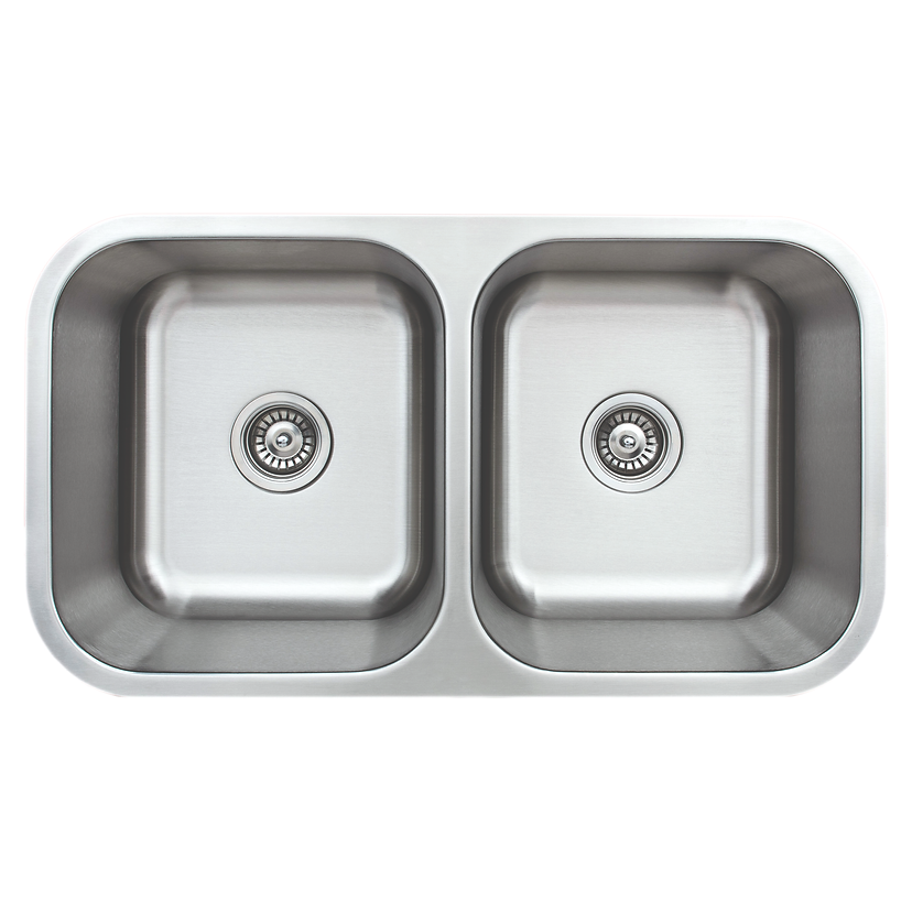 This even double-bowl kitchen sink is made of premium 16 gauge Type 304 stainless steel, the most heavy-duty for residential sinks. The classic symmetric design makes it one of the most popular choices by designers and homeowners. The sink features a traditional brushed matte finish that allows normal wear and tear to blend into its subtle grains, effectively becoming scratch-resistant. A mirror-highlighted rim adds brightness and sophistication to the sink's minimalist appearance. Heavy-duty rubber pads and coating on underside of each sink bowl muffle the noise of splashing water and absorb condensation due to changes in water temperature. Each Wells stainless steel sink comes with our limited lifetime warranty.