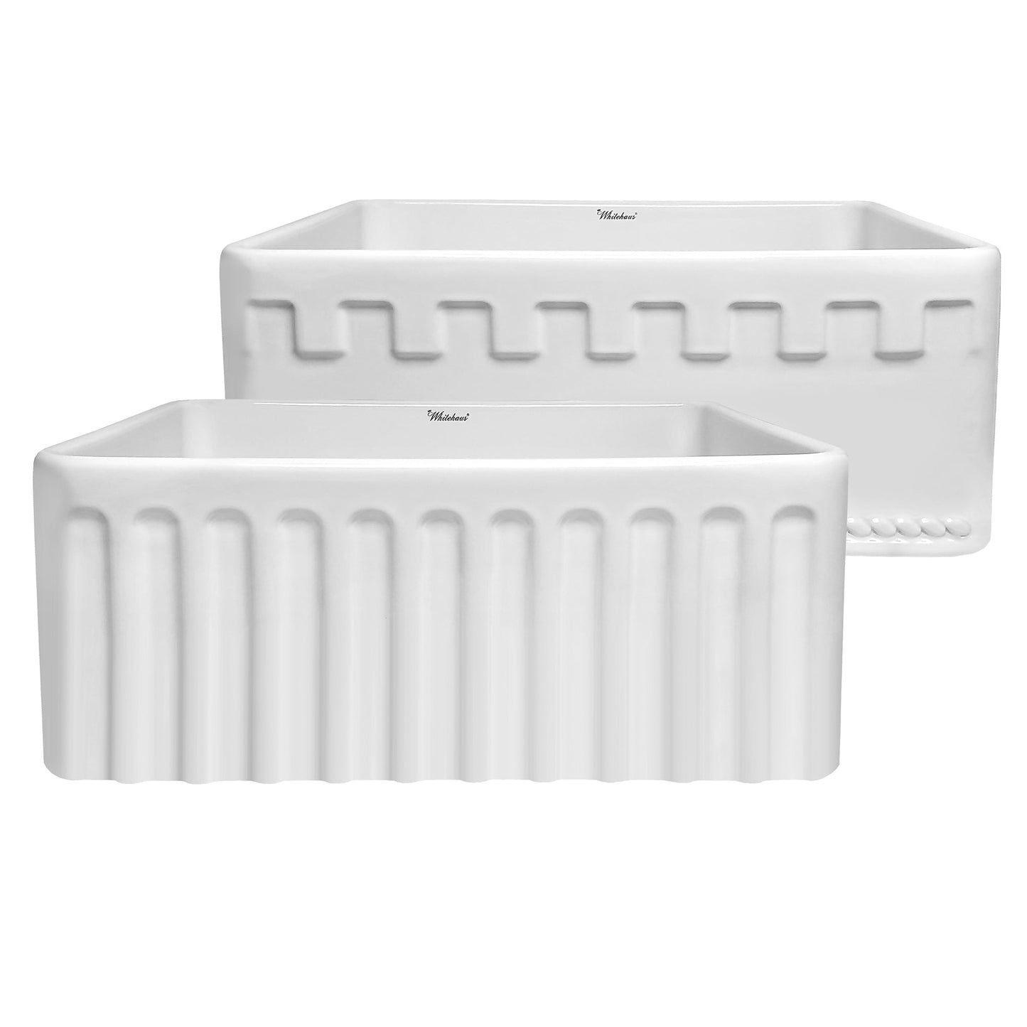 Whitehaus WHFLATN2418-WHITE Farmhaus Fireclay Reversible Sink with a Castlehaus Design Front Apron on One Side and Fluted Front Apron on the Opposite Side
