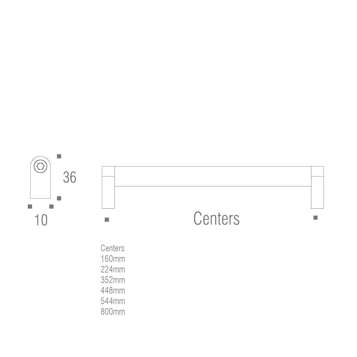 Centers refer to the 'center to center' dimension for pulls. The distance between the two holes drilled into cabinets for application of pulls is the center to center dimension. When purchasing replacement pulls, measurement of the distance between any pre-drilled holes is necessary for accurate product ordering. |
