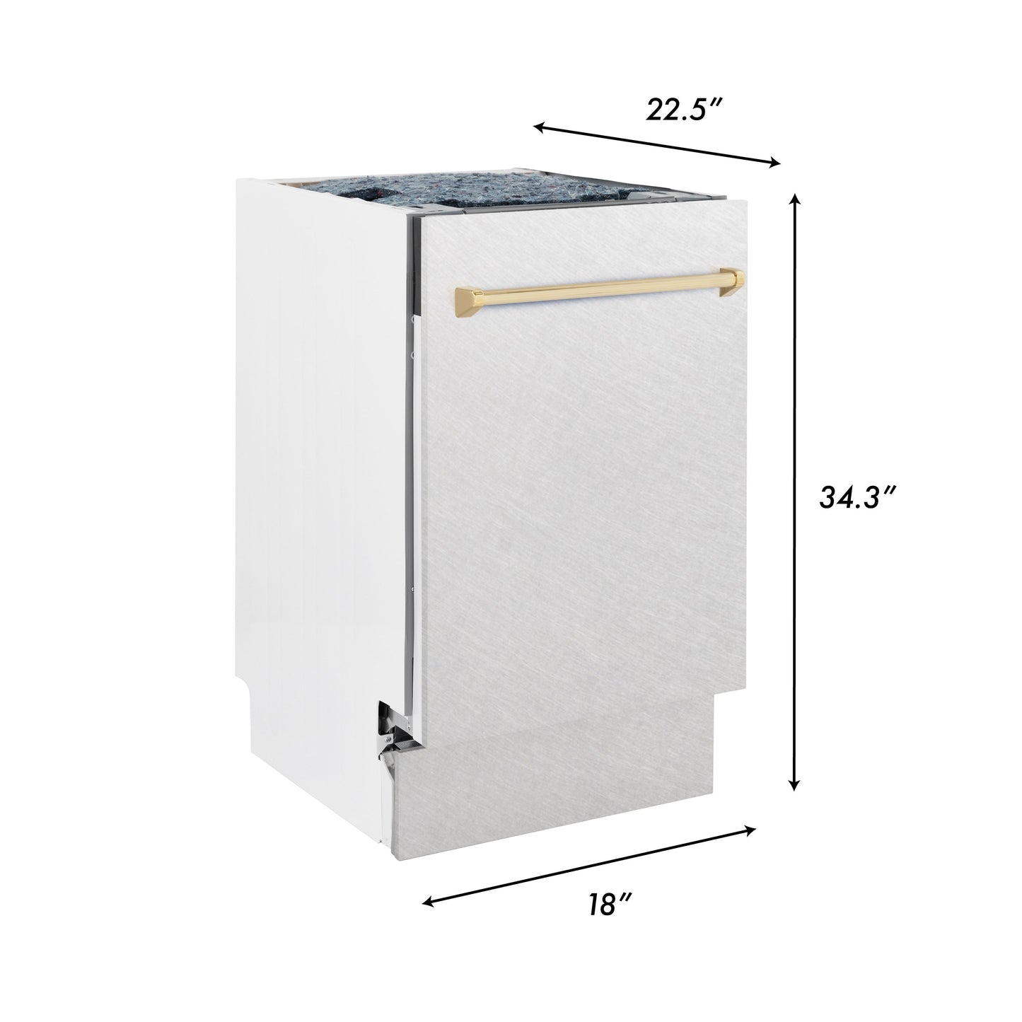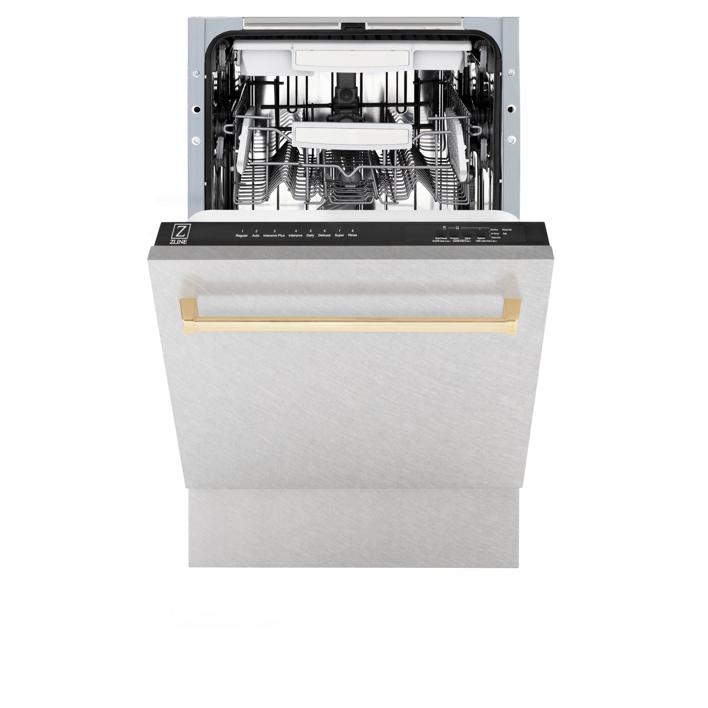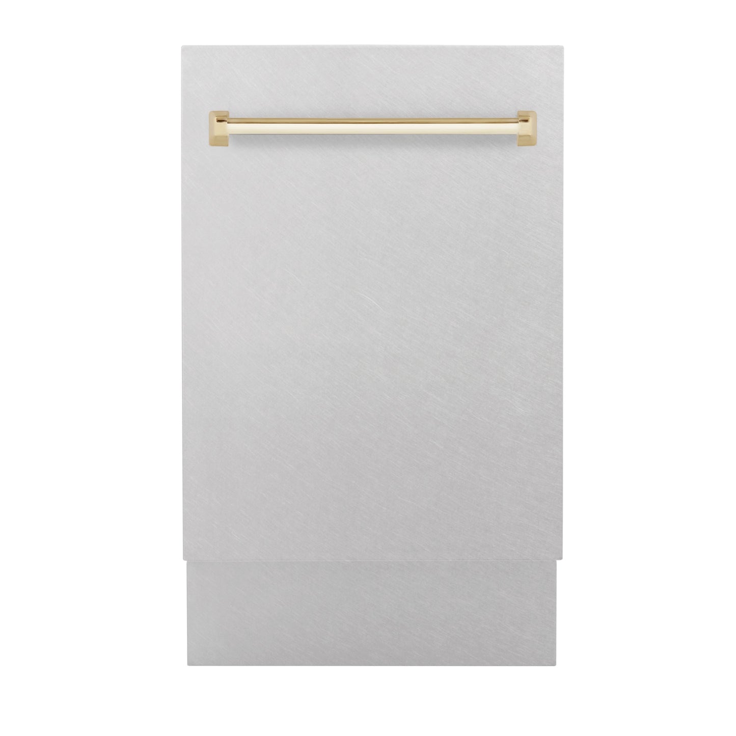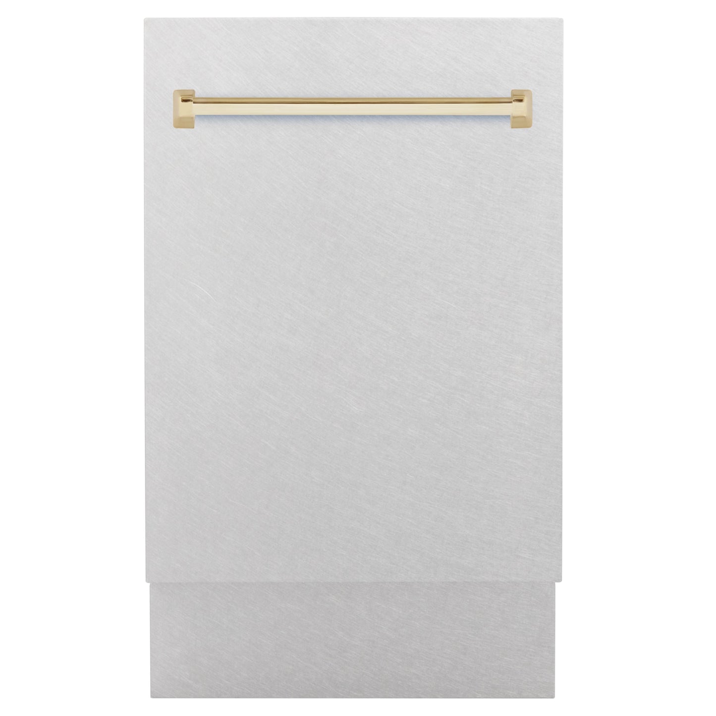 ZLINE Autograph Edition 18" DuraSnow Stainless Steel Compact 3rd Rack Top Control Dishwasher With Gold Handle