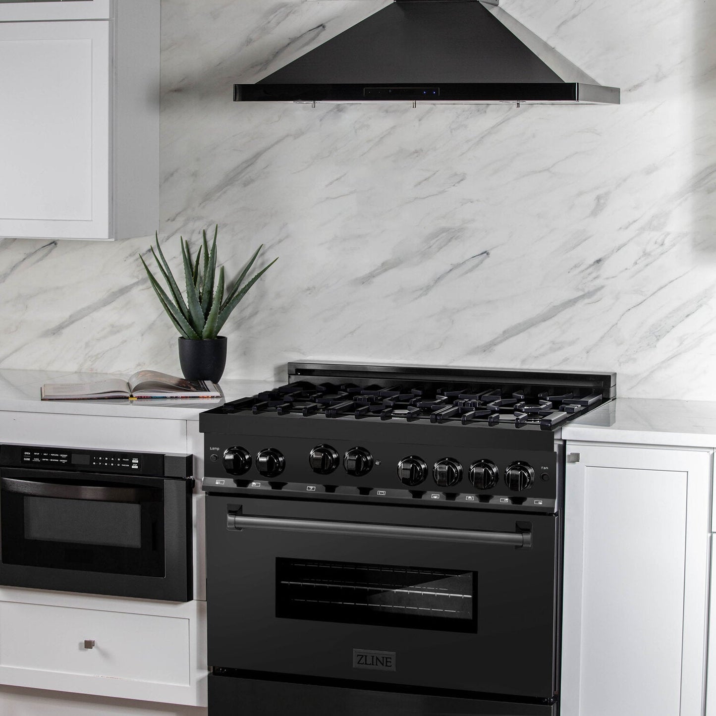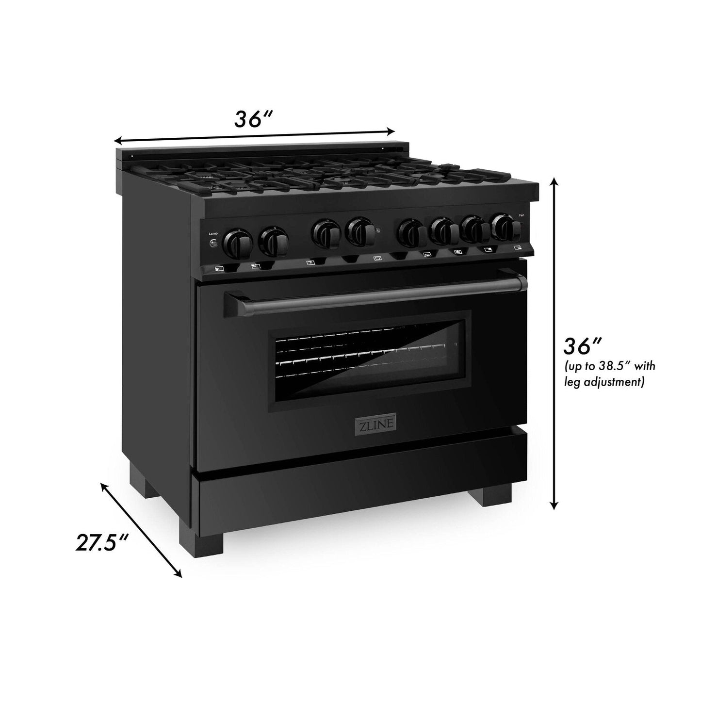 ZLINE Professional 36" Black Stainless Steel 6 Burner Gas Range With 4.6 cu. ft. Gas Oven